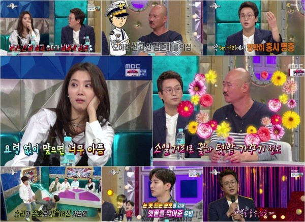 특히 오윤아는 넘사벽 목욕탕 제모 에피소드로 스튜디오를 초토화시켰다. 그녀는 20대에 목욕탕에 자주 갔던 얘기를 하면서 “제모를 해야 하는데 면도기가 없었다”며 누군가 버린 줄 알았던 면도기를 쓰다가 주인이 나타나 결국 한 쪽만 제모하고 나왔다는 에피소드를 밝혀 쿨내를 진동하게 했다. 무엇보다 그녀가 주워 쓴 것은 면도기 뿐 아니라 때수건까지였다고 밝혀 스튜디오는 웃음폭탄이 터졌다.