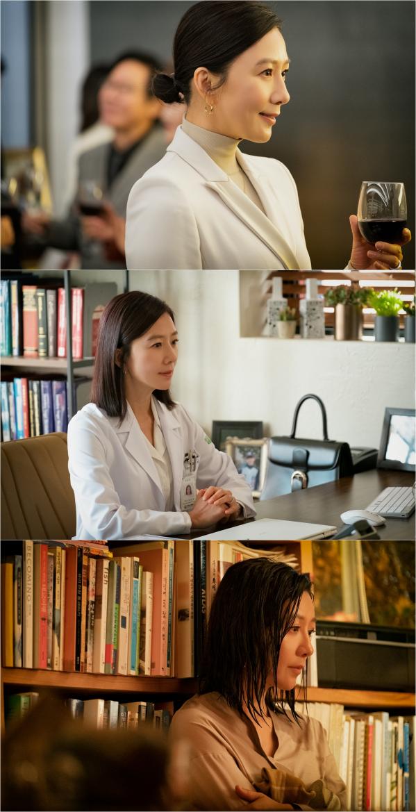 김희애는 공개된 사진에서 섬세한 감정의 변화를 담아내며 지선우를 입체적으로 구현한다. 우아하고 기품있는 지선우의 옅은 미소와 확신에 찬 눈빛에서 당당한 자신감이 묻어나온다. 지선우의 삶이 얼마나 완벽했는지 엿볼 수 있는 대목. 이어 의사 가운을 걸친 지선우의 표정은 사뭇 가라앉아있다. 온화한 분위기와 대비되는 날 선 눈빛과 굳은 입술은 무언가 결심이라도 한 듯 감정 변화가 느껴진다. 이어진 사진 속, 지선우는 삶에 찾아온 균열에 혼란을 마주한 모습이다. 젖은 머리와 정처 없이 흔들리는 시선에도 애써 자신을 부여잡고 있는 벼랑 끝 지선우의 감정이 위태롭게 전해진다. 김희애는 지선우의 변화와 감정을 눈빛만으로 담아내는 세밀한 열연으로 호기심을 자극한다.