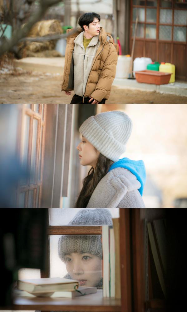 먼저, 은섭의 헝클어진 머릿결과 숨을 크게 들이쉬고 있는 모습을 보니 해원을 다급히 찾는 듯 뛰어오기라도 한 것 같다. 해원 또한 굿나잇 책방 앞을 기웃거리며 은섭을 찾고 있다. 그것도 한번이 아닌 여러 번씩이나 책방 안을 들여다보고 있다. 책방에서 알바를 하는 해원인데, 들어가지도 못하고 서성이기만 하는 이유는 무엇인지 궁금증을 자극한다.
